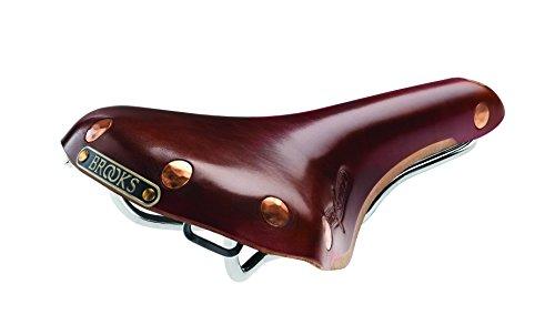 The handsome Swift was the youngest gentleman's racing saddle in the Brooks range. It features delicately hand skived lower sides, where a thin stripe of the leather top surface is cut back, thus exposing the lighter coloured suede beneath which makes for an attractive visual accent and greater comfort when pedalling. The large copper rivets at the nose and tail are also hammered by hand, commensurate with our usual high level of attention to detail. As is the case with all of our hand manufactured saddles, the Swift proudly sports a metal nameplate at the rear, and in addition two embossed graphic details on the sides featuring the saddle name and incorporating an icon of a Swift in flight. On introduction the Swift was offered only with lightweight titanium rails. However, due to popular demand, since 2008 we also offer the Swift Chrome, with traditional steel underpinnings, finished to our usual high standards with bright polished chromium plate.