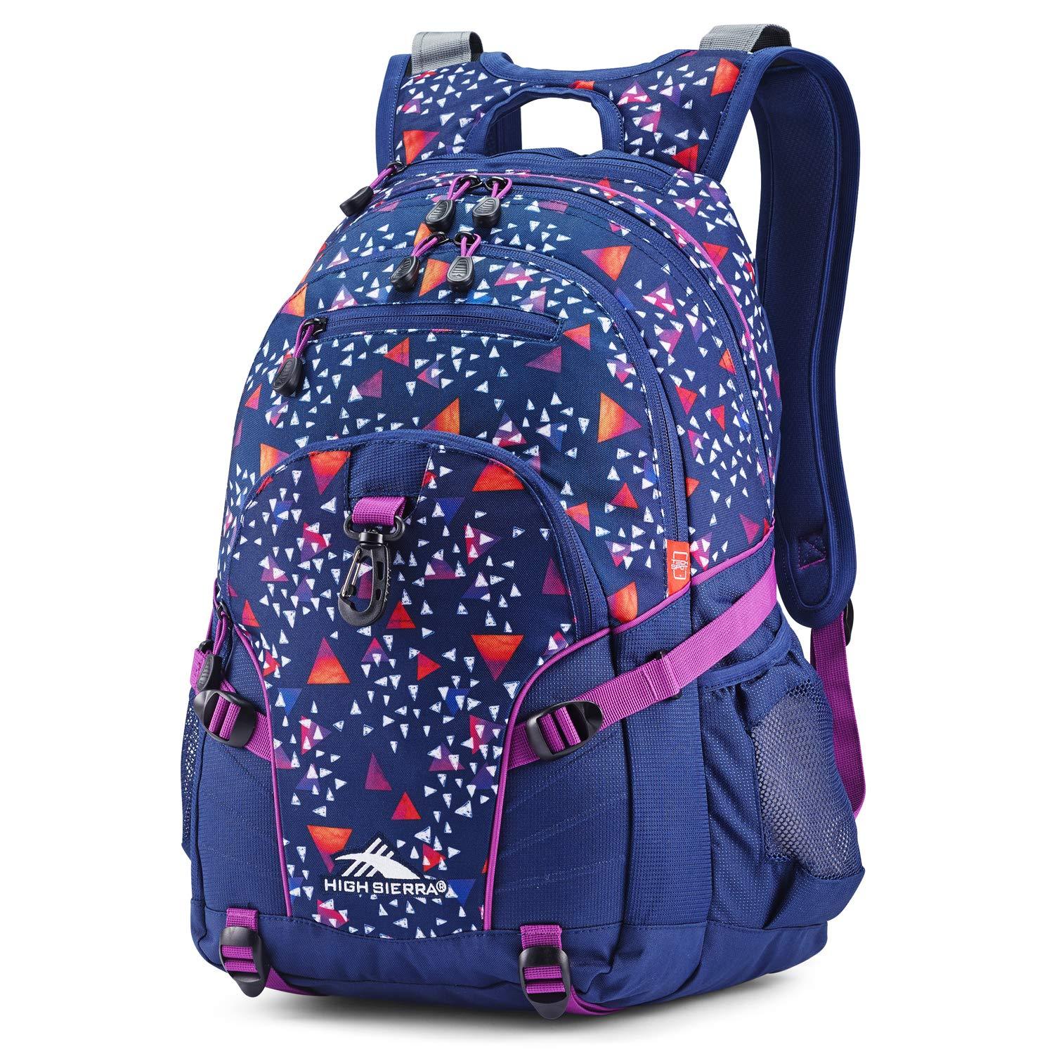 The versatile High Sierra Loop backpack is at home on and off the trail. The multi-compartment design keeps your gear organized. The side compression straps are adjustable to secure your items down and the adjustable bottom webbing straps are perfect for carrying items like a sleeping bag or tent. For days in the office, the Loop has storage for your tablet, phone and other personal digital gear. The multi-pocket organizer with key fob hook provides storage for all of your smaller items. Whether you are hiking a new trail or heading to class, the High Sierra Loop is the perfect travel companion.