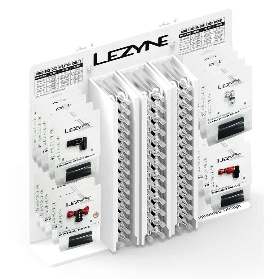 * Includes: 30x 16g, 30x 20g, 30x 25g, 5x Trigger Drive (black, silver, red, blue, purple), 5x Trigger Sped Drive (3x black, 2x silver), 5x Control Drive (black, silver, red, blue, purple), 5x Twin Speed Drive (3x black, 2x silver), 1x acrylic CO2 slatwall POP, 1x hardware set for wall mounting, 4x aluminum hangers* Shows entire tire size & inflation pressure chart on the left side* Dims: 427mm x 400mm (17'' x 16'')