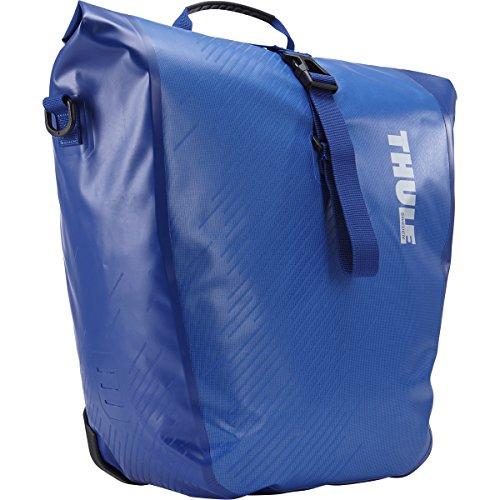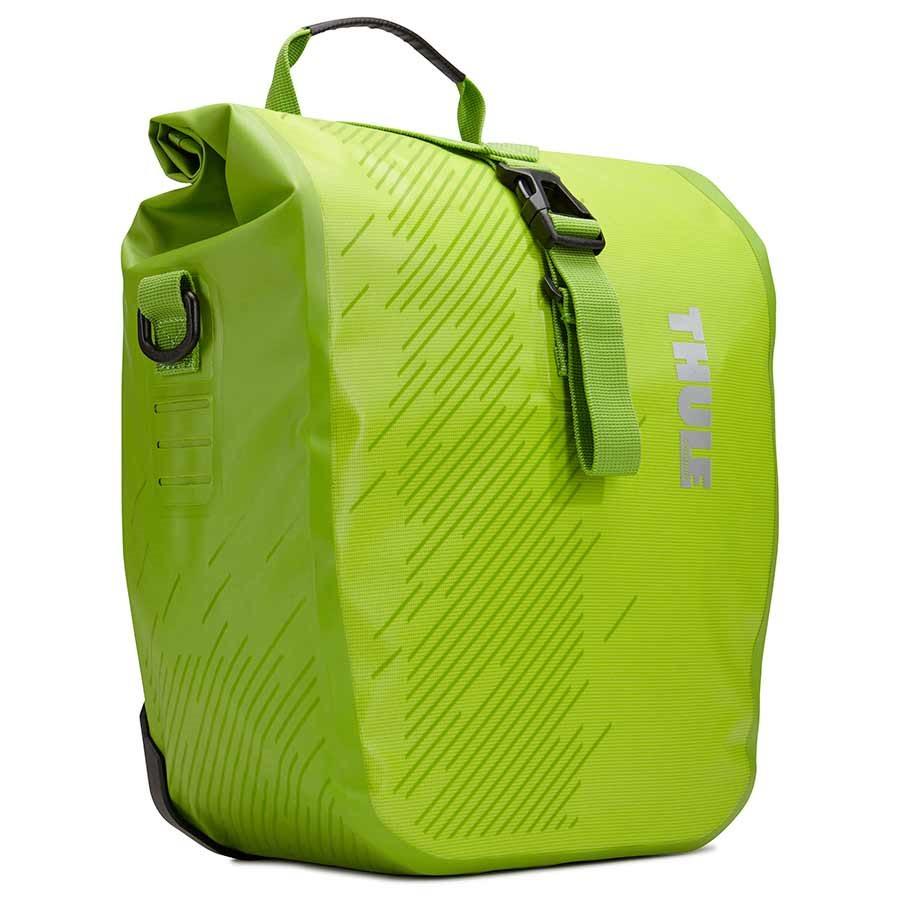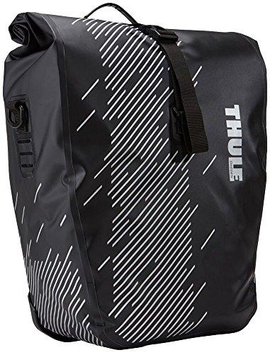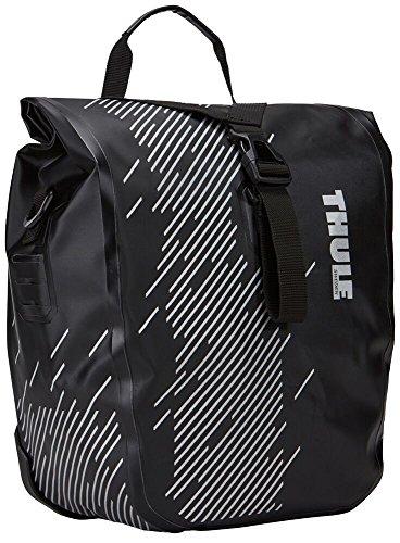 * Welded construction and roll top closure ensures contents are kept dry and dust free.* Attachment system with lower magnetic connection is easy to use, secure and vibration-free.* Highly reflective elements on both front and side panels provide superior visibility.* Convenient light attachment points for added safety.* Interior pockets keep smaller items organized.* Integrated grab handles and detachable shoulder strap allow for multiple carrying options.* Fits best on Thule racks, but will work on virtually any bike rack.* Sold in pairs.